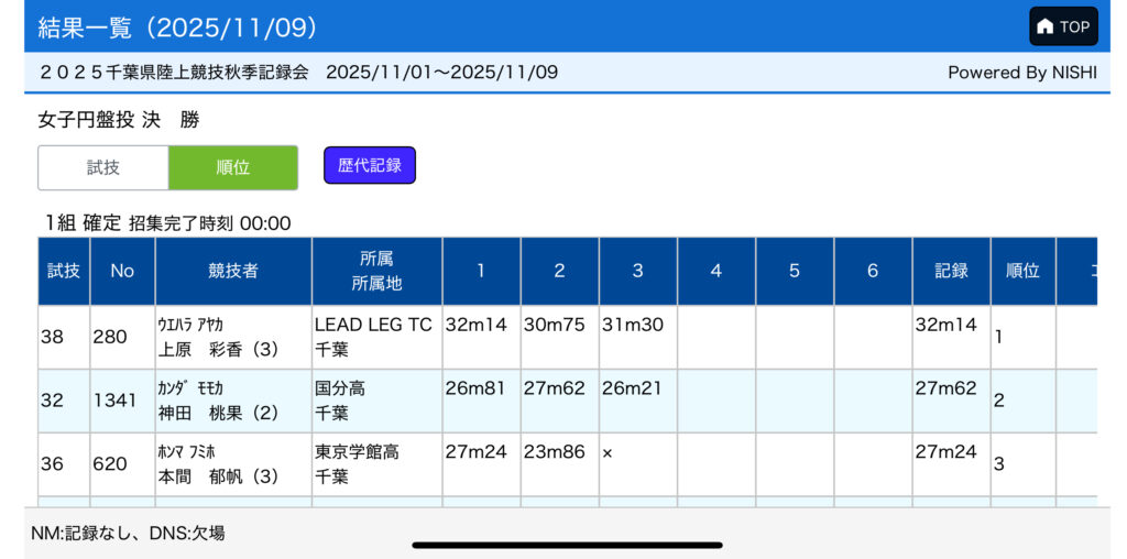 2025千葉県陸上競技秋季記録会 女子円盤投
